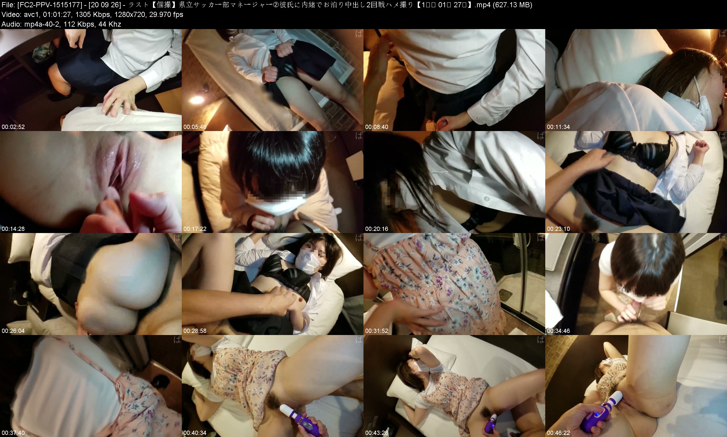 FC2 PPV 1515177 20.09.26 ラスト【個撮】県立サッカー部マネージャー②彼氏に内緒でお泊り中出し2回戦ハメ撮り【1시간 01분 27초】